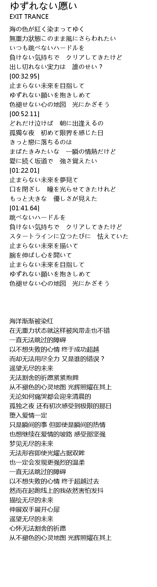 | [02:23.87] | ゆずれない願いを抱きしめて |