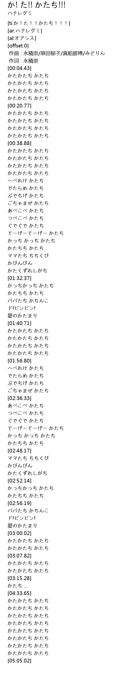 | [00:00.00] | 作曲 : 永積崇/原田郁子/真船勝博/みどりん |
