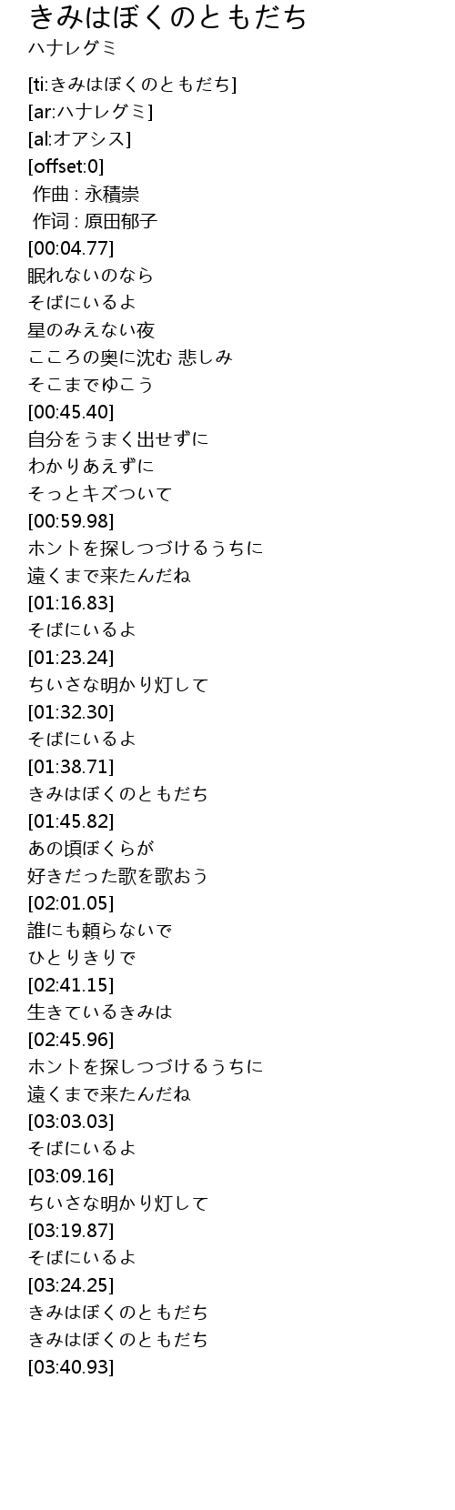 [ti:きみはぼくのともだち] |