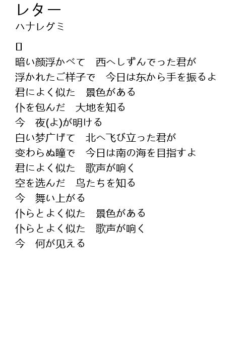 | 白い梦广げて 北へ飞び立った君が | |