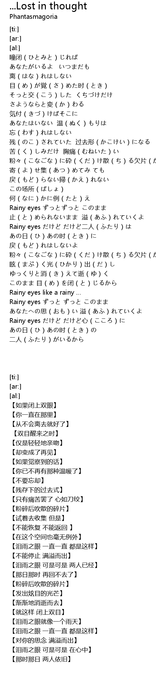 | [01:52.45] | Rainy eyes ずっとずっと このまま |