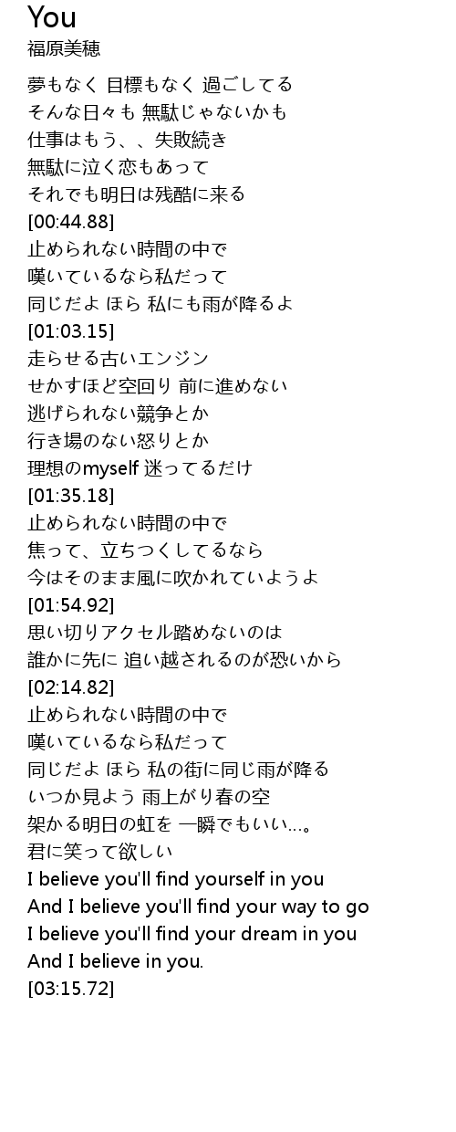 | [01:26.34] | 理想のmyself 迷ってるだけ |