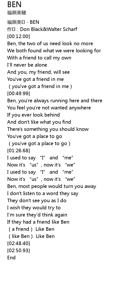 | [02:31.43] | a friend Like Ben |