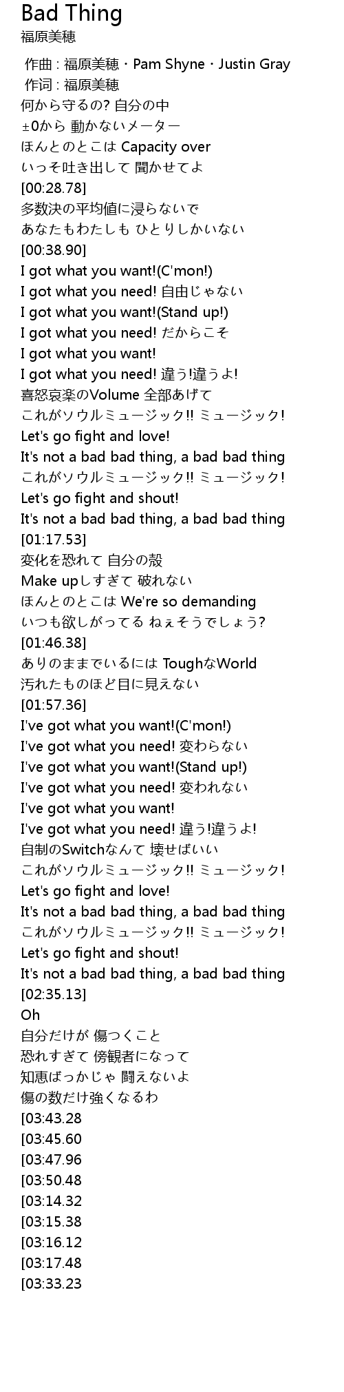 | [03:27.89][03:17.48] | It' s not a bad bad thing, a bad bad thing |