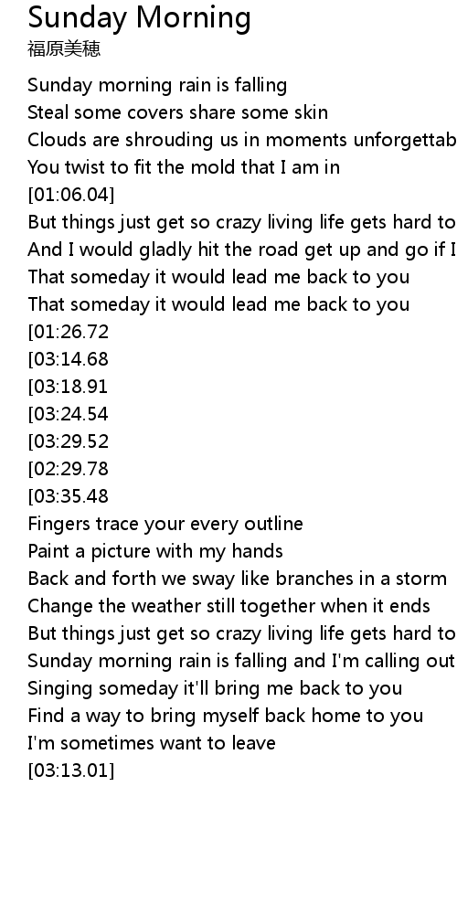 Sunday morning rain is falling and I'm calling out to you |