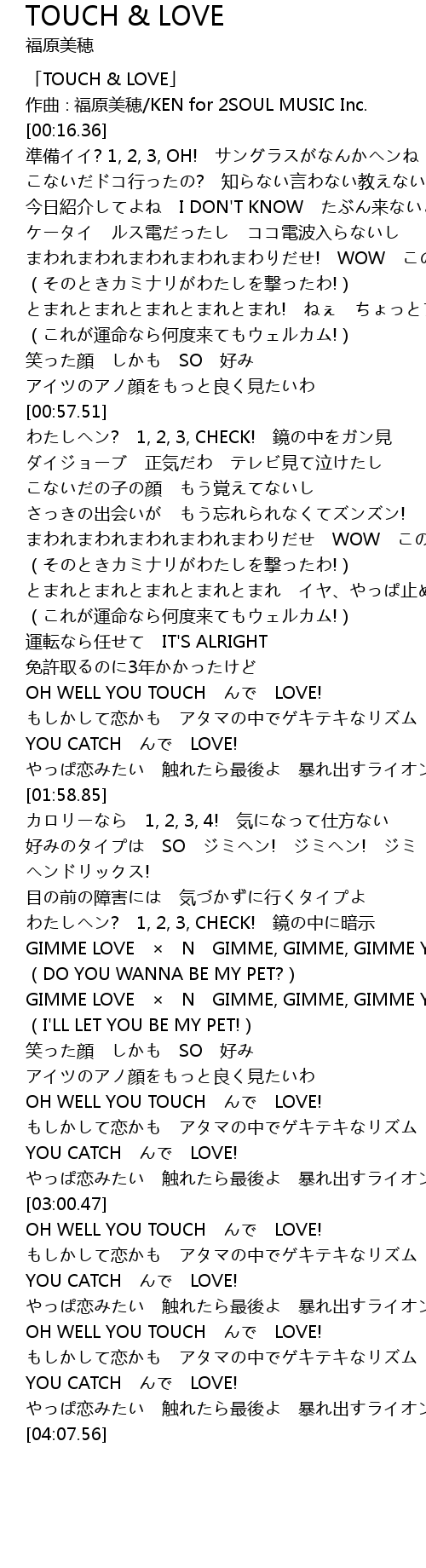 | [02:42.96] | OH WELL YOU TOUCH んで LOVE! |