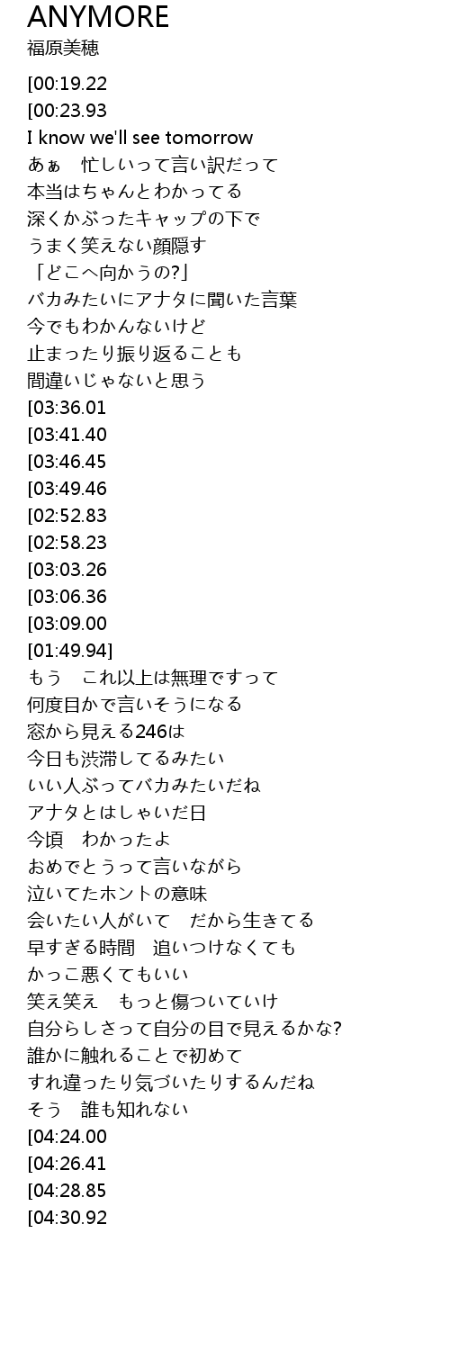 | [04:21.30][04:30.92][04:40.51][04:50.08] | I know we' ll see tomorrow |