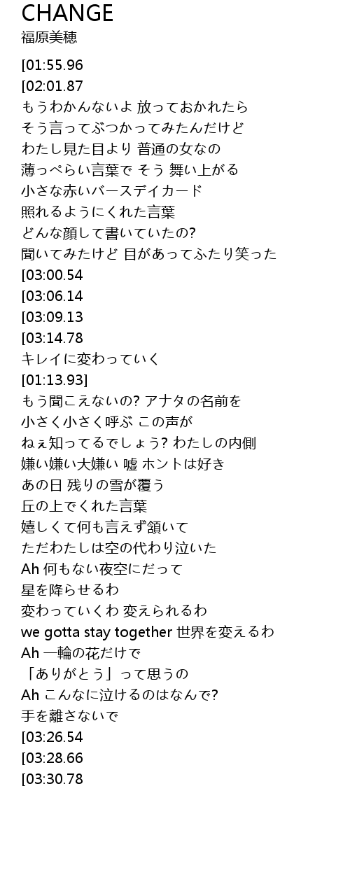 | [02:15.80] | 変わっていくわ 変えられるわ |