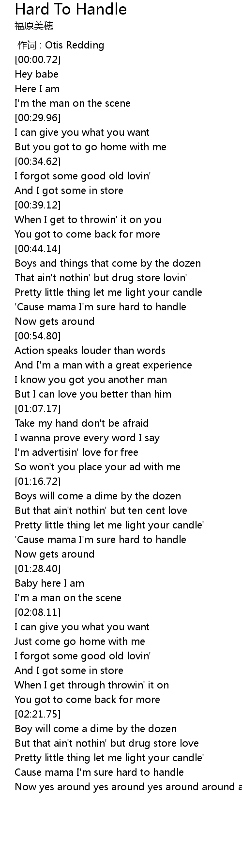 | [00:51.50] | 'Cause mama I'm sure hard to handle |