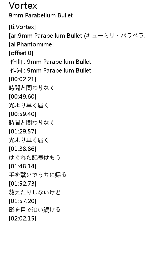 | [00:00.673] | 作词 : 9mm Parabellum Bullet |