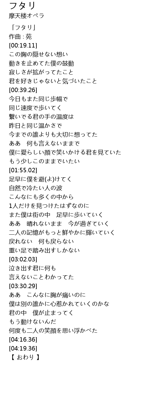 | [00:01.11] | 「フタリ」 |