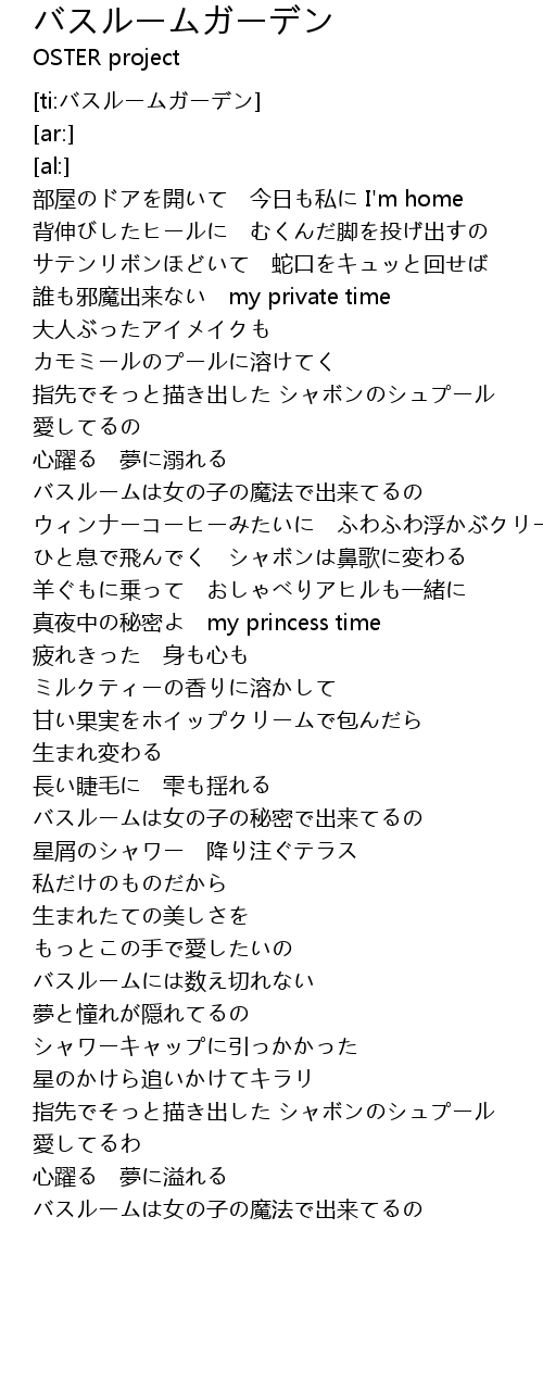 | [01:20.88] | バスルームは女の子の魔法で出来てるの |