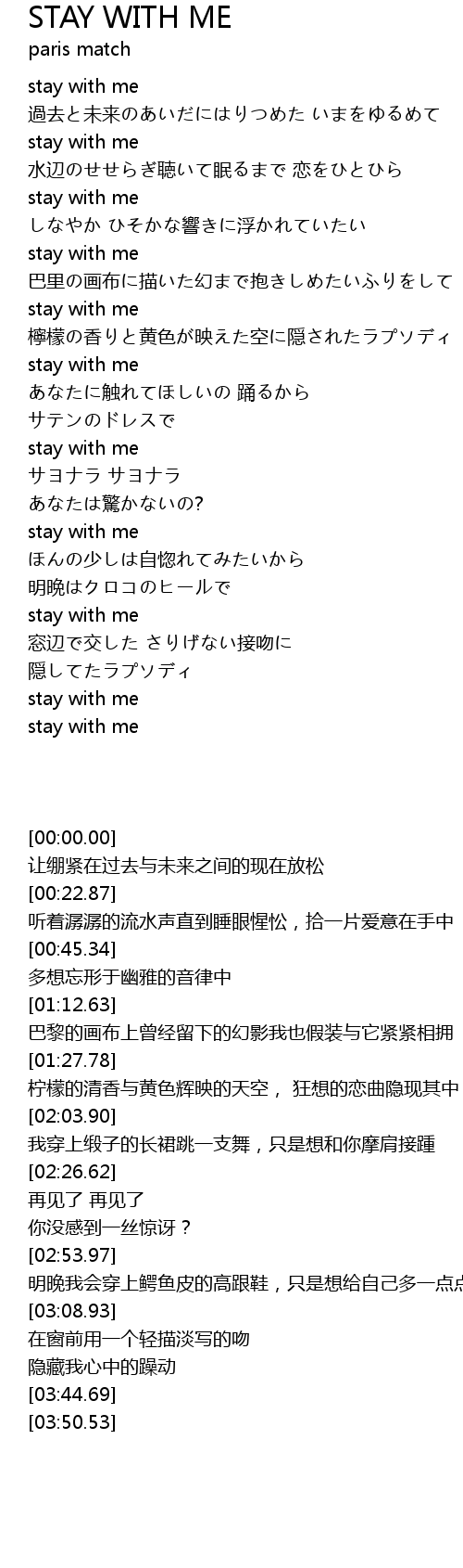 | [02:07.79] | あなたに触れてほしいの 踊るから サテンのドレスで |