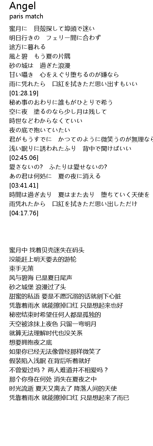 | [03:51.58] | 时光流逝 夏天又离去了 降落人间的天使 |