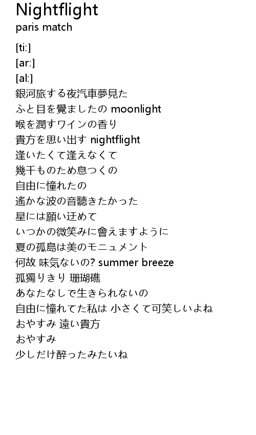 | [00:58.30] | 貴方を思い出す nightflight |