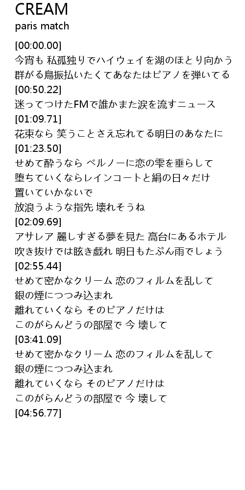 | [02:56.12] | せめて密かなクリーム 恋のフィルムを乱して |