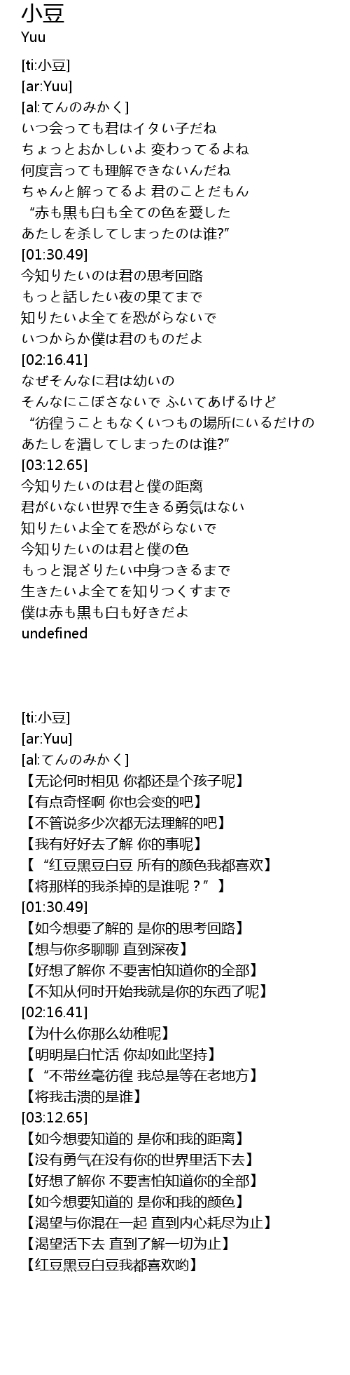 | [04:13.81] | 【红豆黑豆白豆我都喜欢哟】 |