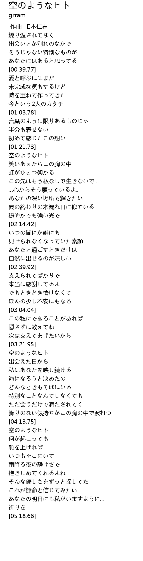 | [01:23.54] | 空のようなヒト |