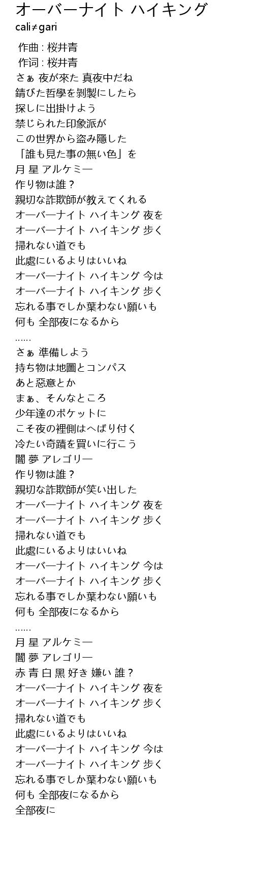 | [03:15.10] | オ一バ一ナイト ハイキング 夜を |