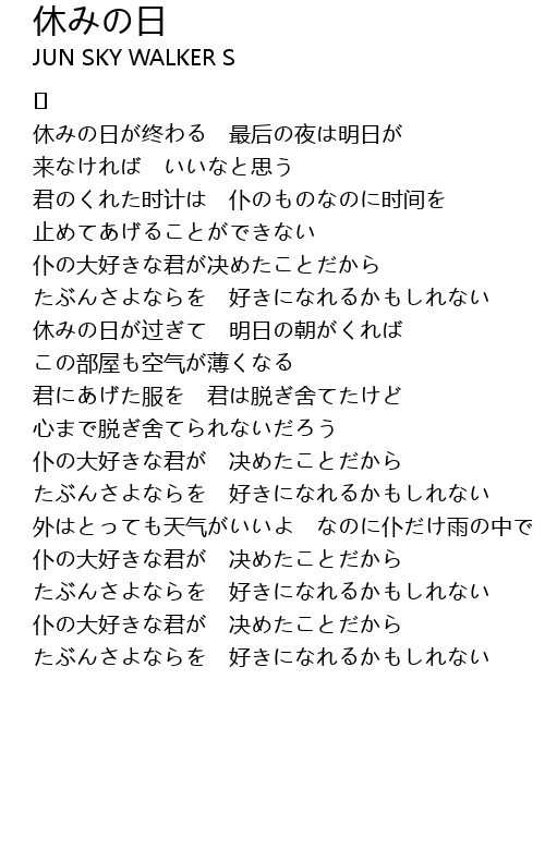 | 休みの日が终わる 最后の夜は明日が | |