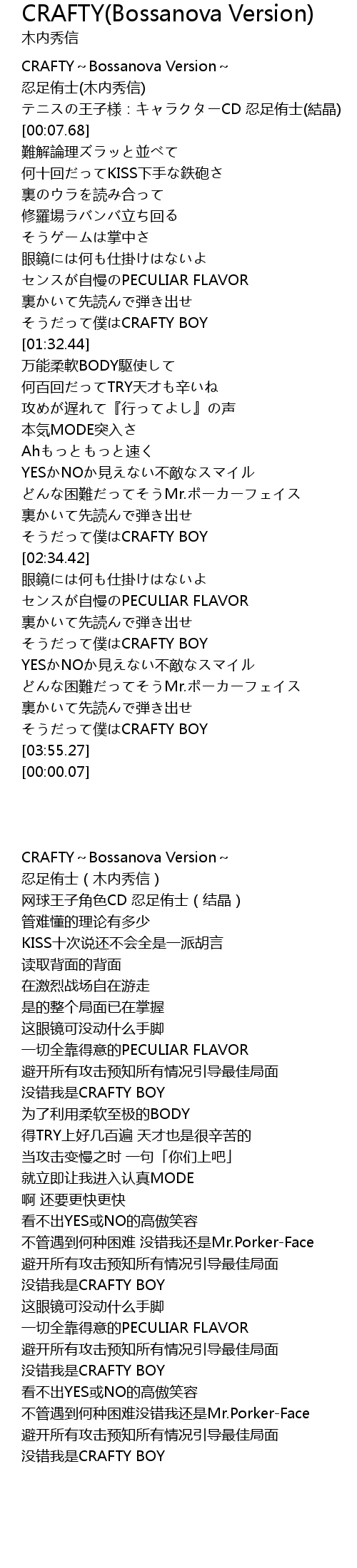 | [03:33.26] | 没错我是CRAFTY BOY |