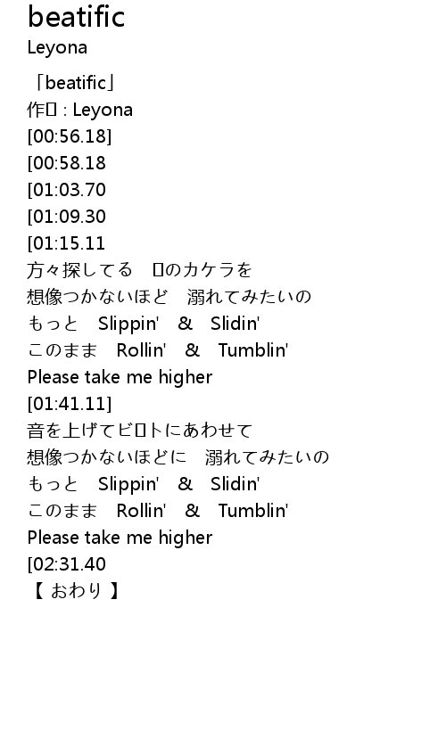 | [00:16.18] | 「beatific」 |