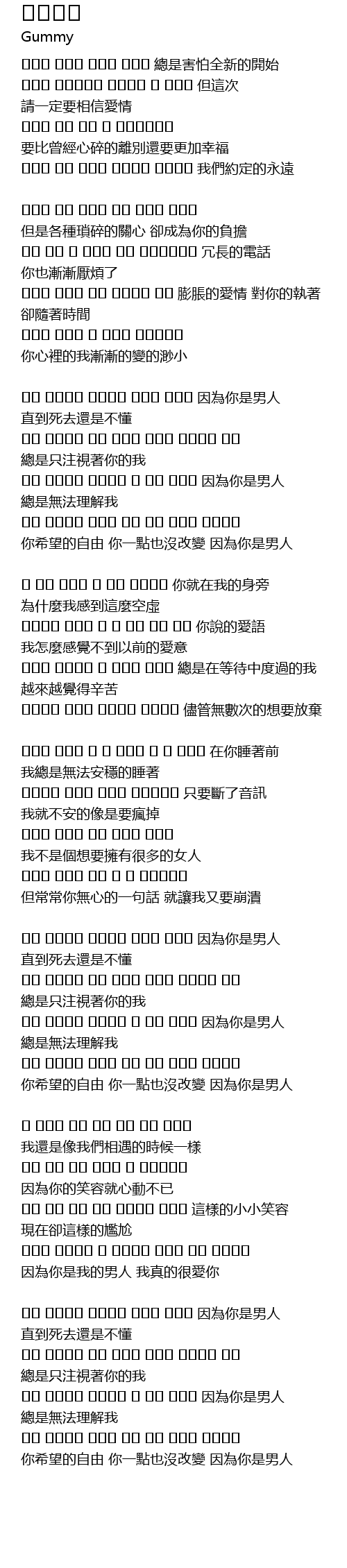 | 그댄 남자라서 남자라서 날 이해 못하죠 因為你是男人 總是無法理解我 | |