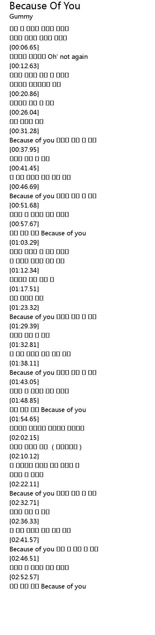 | [00:33.72] | Because of you 눈물이 나는 그 이유 |