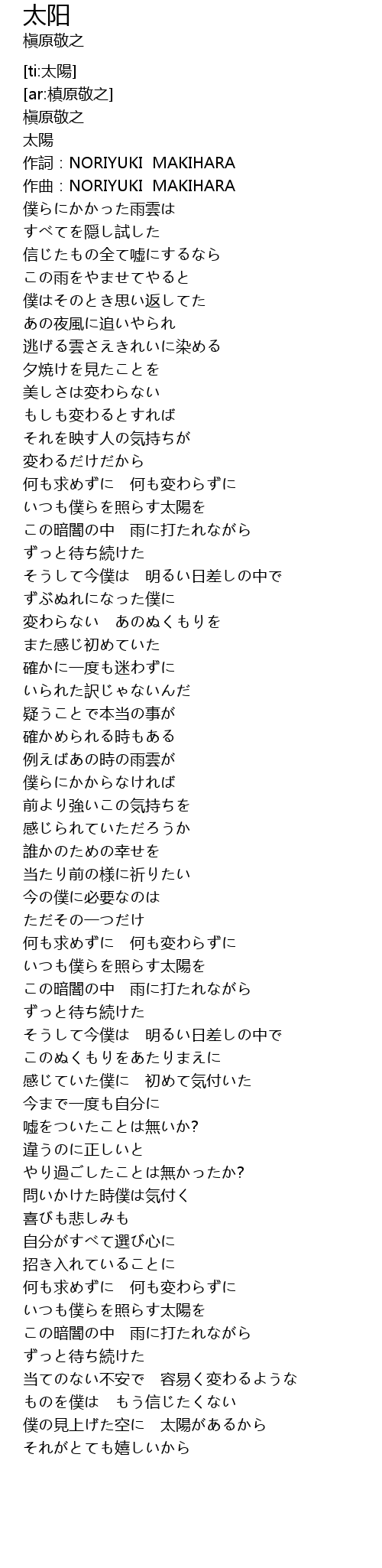 | [00:04.625] | zuò cí: NORIYUKI MAKIHARA |