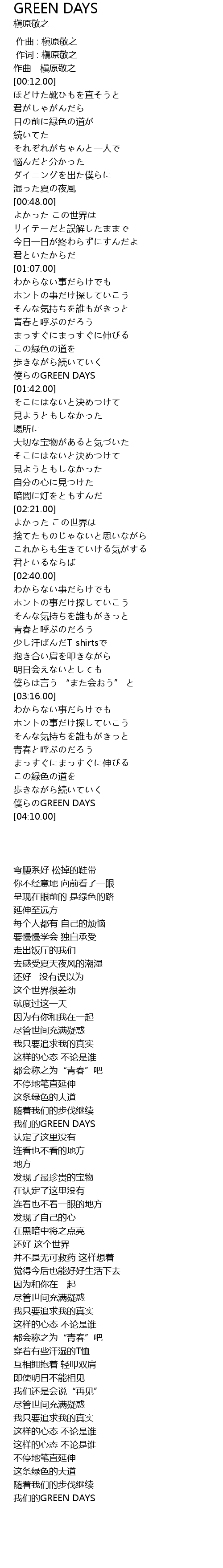 | [01:37.00] | 我们的GREEN DAYS |