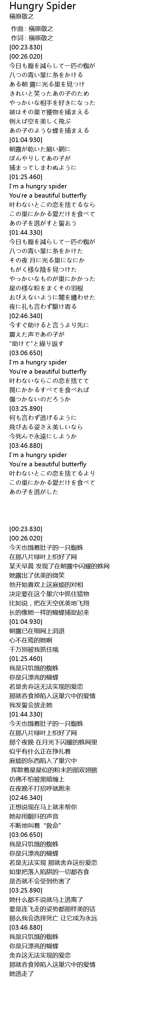 | [01:26.640] | 我是只饥饿的蜘蛛 |