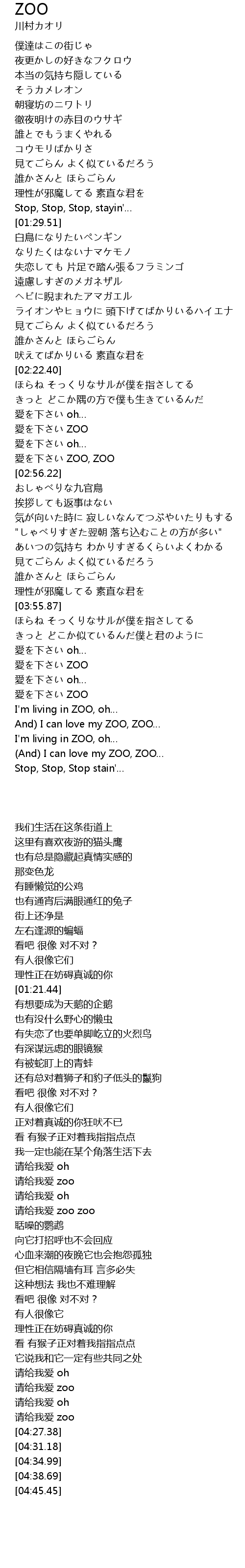 | [04:31.18] | And) I can love my ZOO, ZOO… |