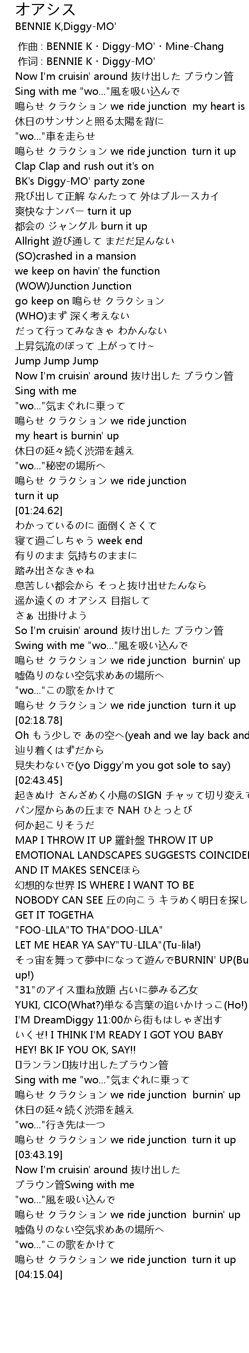 | [04:02.23] | 鳴らせ クラクション we ride junction turn it up |