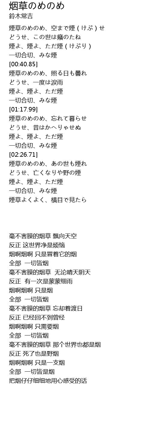 毫不害臊的烟草 忘却着渡日 |