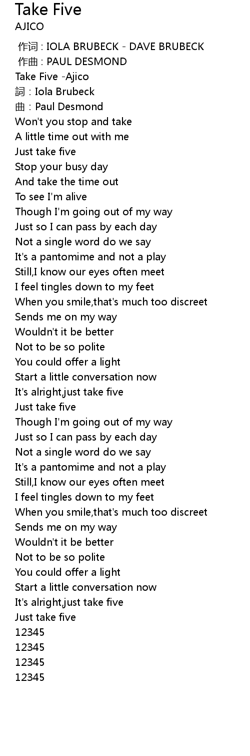 | [00:00.000] | 作词 : IOLA BRUBECK - DAVE BRUBECK |