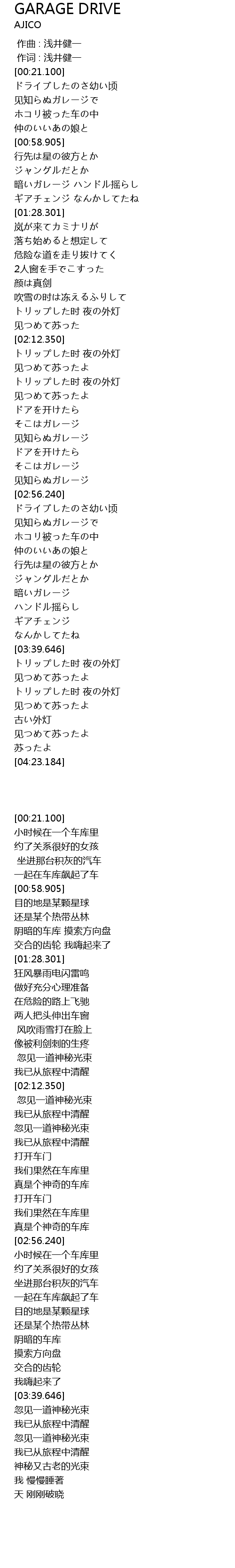 | [00:43.352] | ドライブしたのさ幼い顷 |