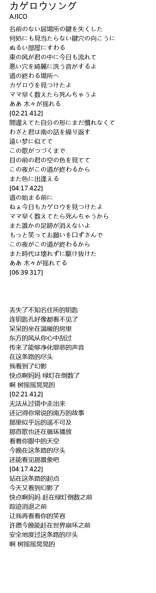 | [00:26.771] | 名前のない居場所の鍵を失くした |
