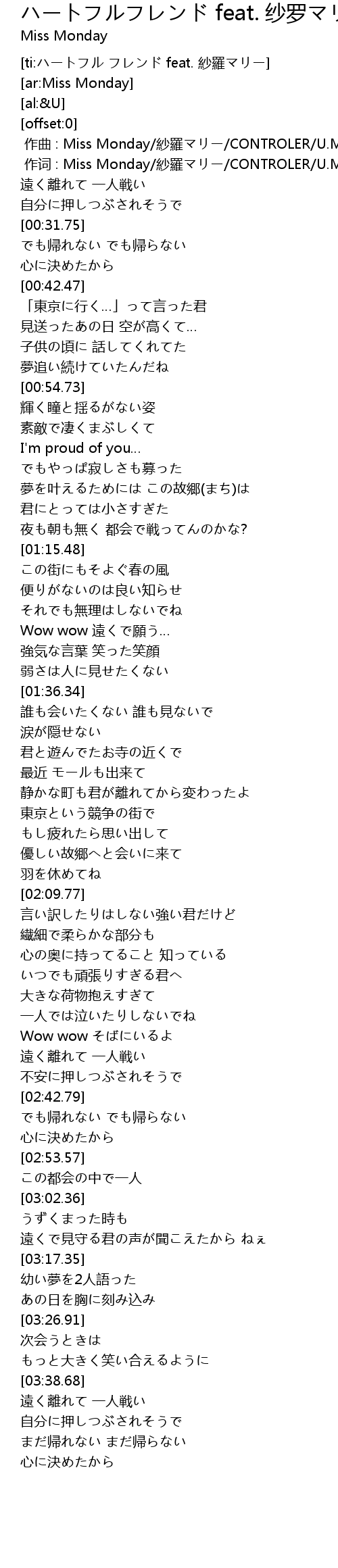 | [ti:ハートフル フレンド feat. 紗羅マリー] | |
