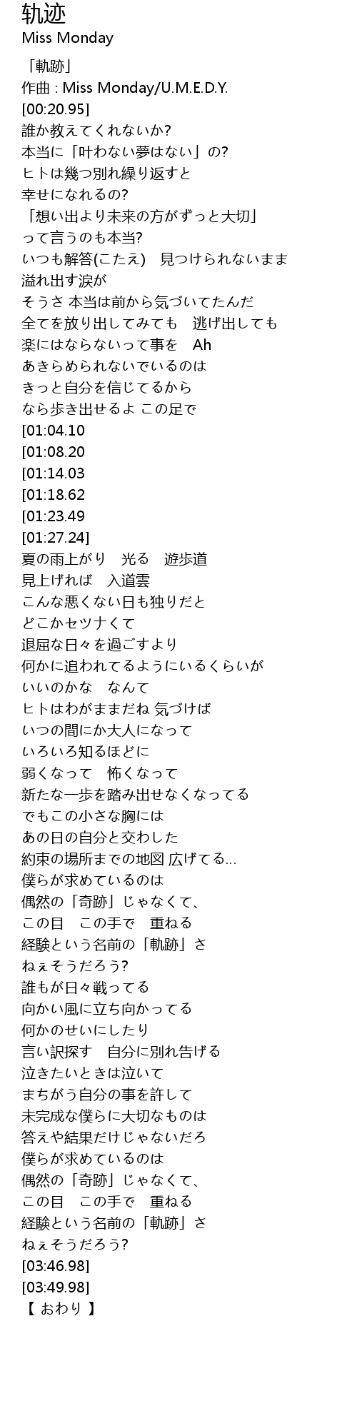 | [02:25.86] | 経験という名前の「軌跡」さ |
