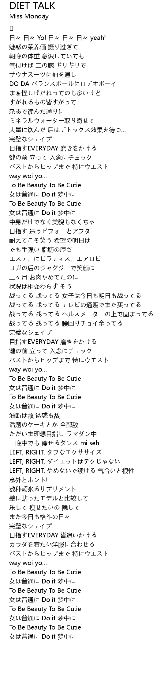 | 歌曲 | DIET TALK |