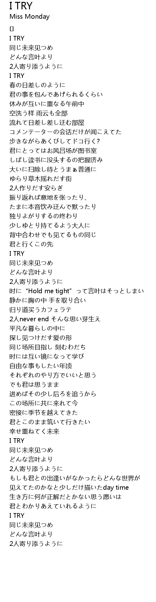 | 时に“Hold me tight”って言叶はそっとしまい | |