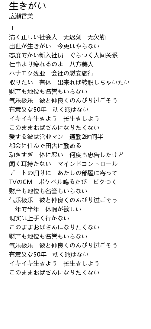 | 歌曲 | 生きがい |