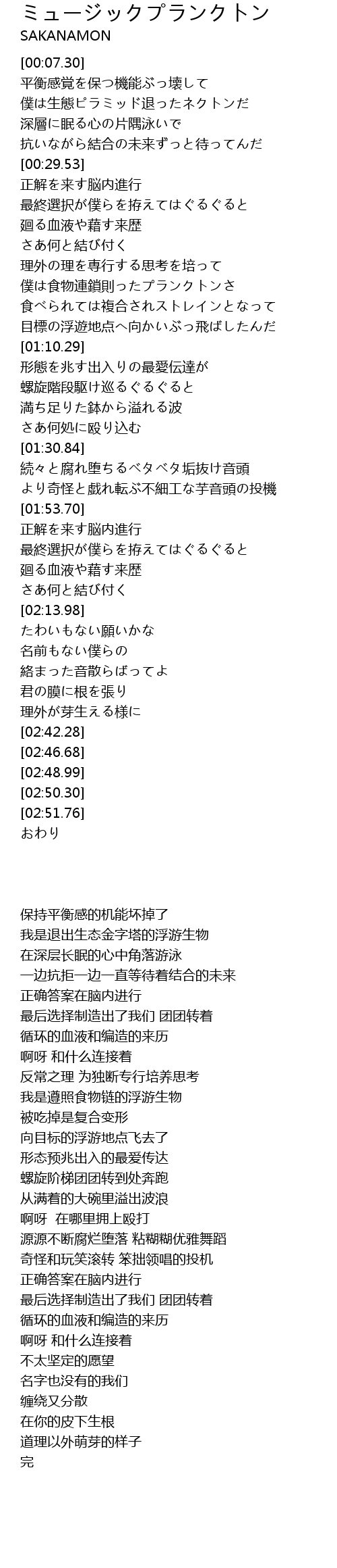 | [00:55.48] | 僕は食物連鎖則ったプランクトンさ |