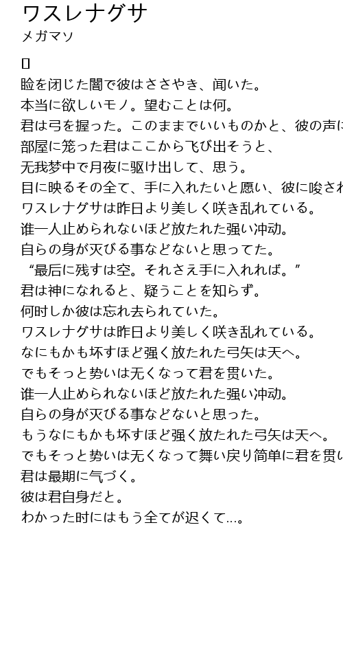| なにもかも坏すほど强く放たれた弓矢は天へ。 | |