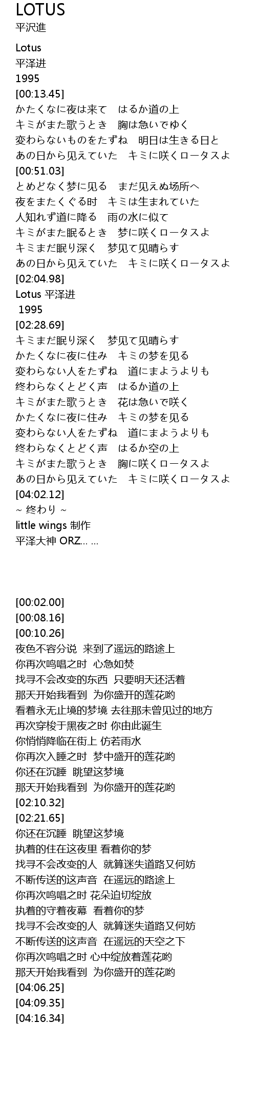 | [02:10.32] | Lotus 平泽进 |
