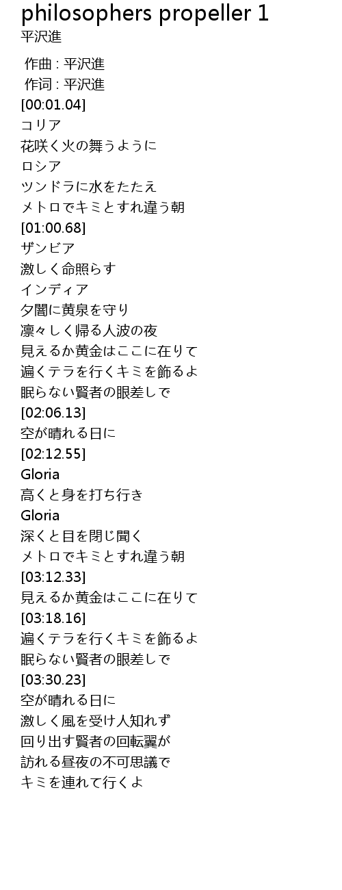 | [00:00.334] | 作词 : 平沢進 |
