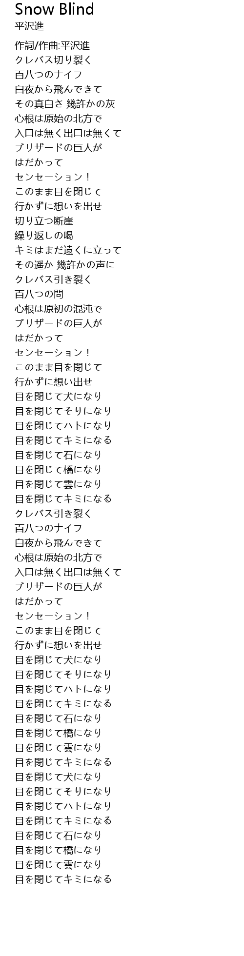 | [03:01.224] | 目を閉じてそりになり |