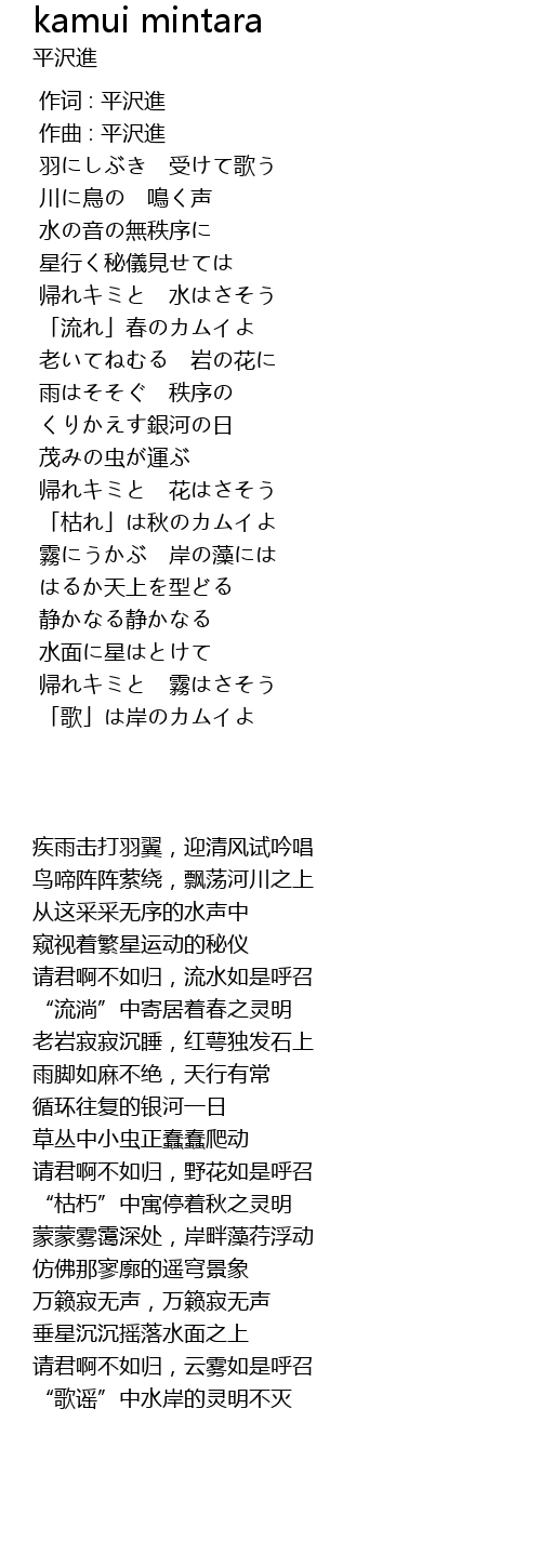 | [04:00.757] | 「歌」は岸のカムイよ |