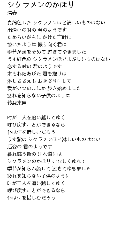 うす红色の シクラメンほどまぶしいものはない |