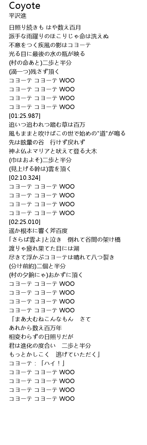 | [02:10.467] | コヨーテ コヨーテ WOO |